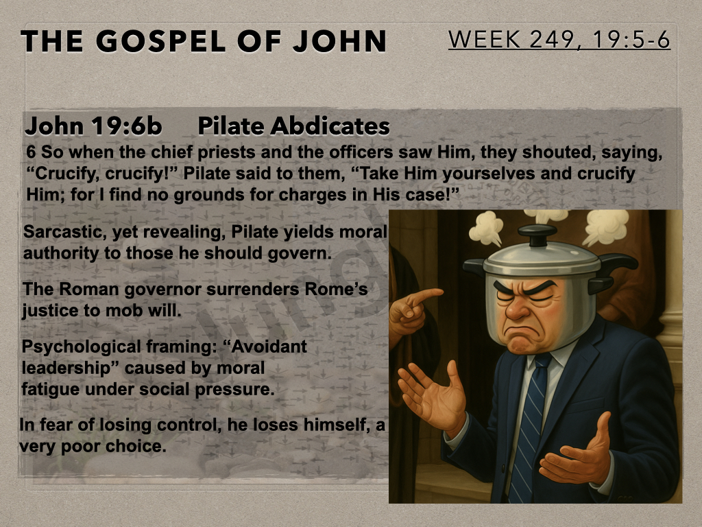 Unique to John’s Gospel account is the extended interaction between Jesus and Pilate. This is no accident. We ask, What was John’s intent? There are numerous opinions hovering around questions of Jesus’s nature, the historical political context and the overall purpose of the cross. Thanks for joining in as the Moot Men examine and discuss.